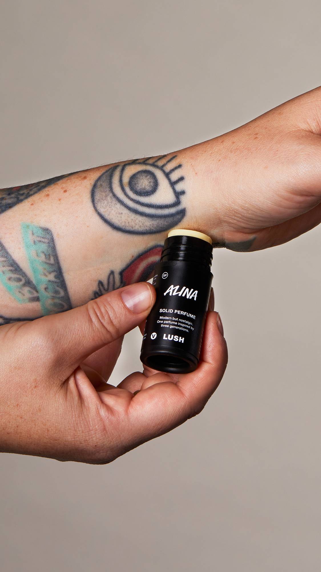 This solid perfume hits with a sweet and fresh first impression of bergamot, pink pepper and clove bud oil, along with warm amber and vanilla. Then comes a more floral, sweet, and powdery center with jasmine and orris oil, before finally an undercurrent of patchouli and frankincense leave a deep and woody lasting impact. Alina was created by Lush perfumer of the same name who was inspired by the generations of women that came before her. Three distinct fragrances, each representing a different generation born in the last 100 years, are blended to create a multi-layered and timeless scent. She named the fragrance Alina—a name given to her by her grandmother.