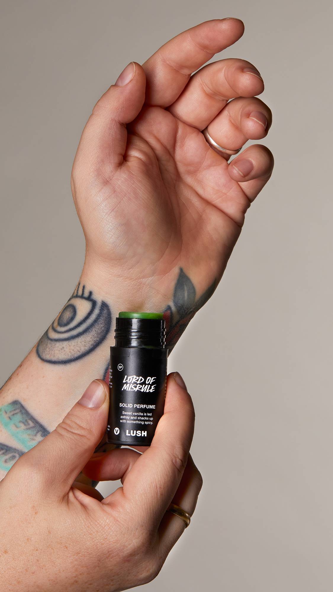 How to use: Push up gently, apply to your pulse points and massage in. Use your wrist to gently push the perfume back into its packaging.